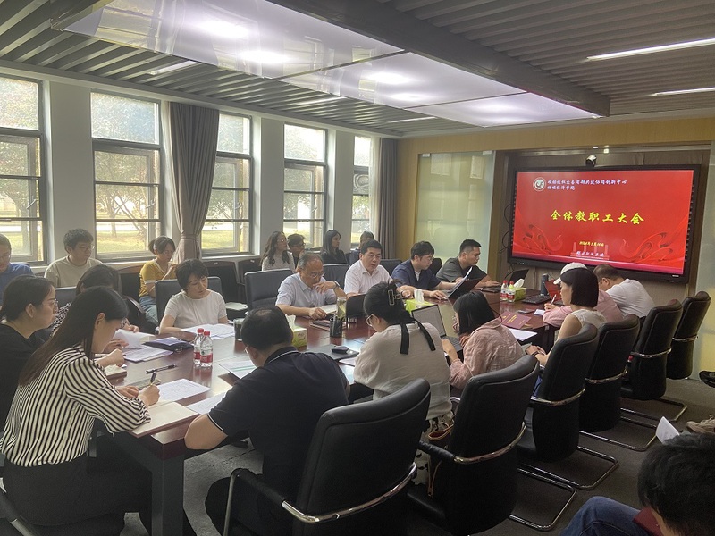 5月16日下午,学院召开党纪学习教育推进会暨全体教职工大会。会议由学院党总支副书记、院长严飞主持,全体教职工参加会议。