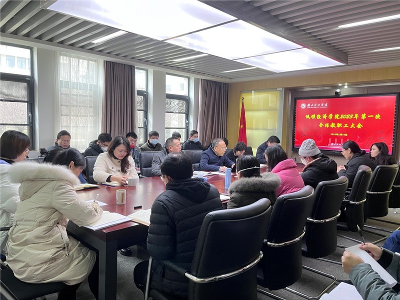 院长严飞首先感谢各位教职工在过去一年的辛苦付出。他指出, 2023年是学校本科教育教学审核评估之年,也是中心快速发展之年。他要求:一是认清方位,以更加开阔的眼界和格局认清学科专业在国家战略中的位置,认清个人在学科与学院发展中的位置;二是勤奋努力,以更加积极的态度辛勤耕耘,脚踏实地、深耕细作;三是融入集体,以更加开放的姿态加强团队协作,团结奋进、共同提高;四是服务大局,以更高的站位和更强的担当服务学院、学校与国家的大局,取得更好的成绩。