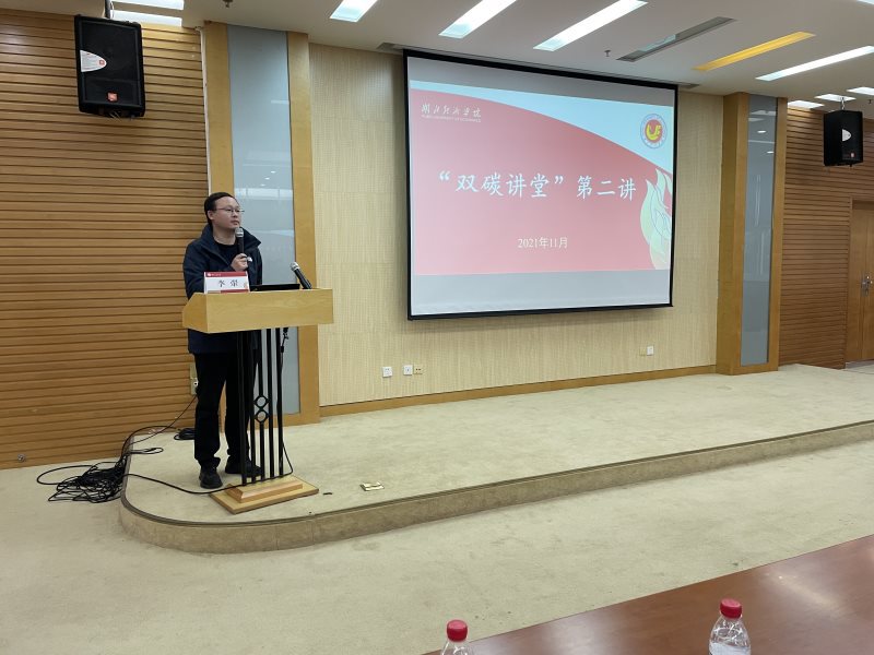 2021年11月11日下午,湖北碳排放权交易中心绿色金融事业部负责人李翬受邀来校,在大学生活动中心第六报告厅为学校师生做“双碳目标下绿色金融实践与展望”的主题演讲,活动由学院院长助理黄锦鹏主持,来自学校各院系的130余位师生积极参与。
