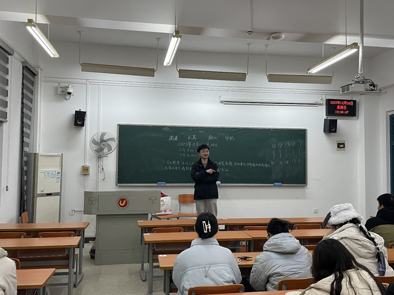 本网讯(通讯员张诗雅)为进一步增进大一学生对本专业的理解,增强学生学习专业知识的信心,12月24日晚,太阳集团见好就收9728在教2-508开展了“荣誉班主任”进班级活动。太阳集团见好就收9728辅导员周杰老师应邀出席,低碳2342班全体学生参加此次活动。