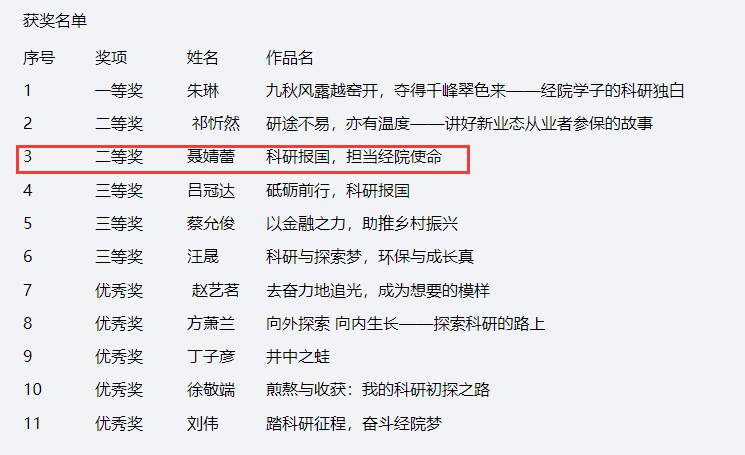 本网讯(通讯员 蒋西艳)1月2日,“立科研报国志,做奋斗经院人”主题征文比赛结果正式公布。经过众多学生的积极参与,共有11名同学获奖 。